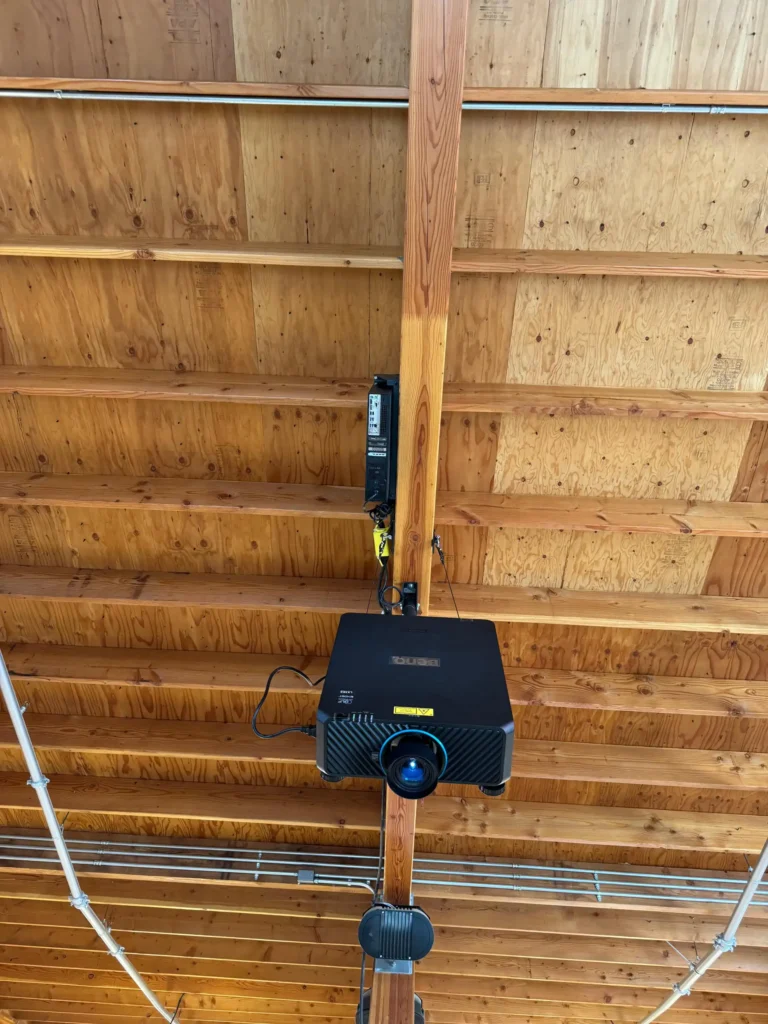 First, we needed to consider the technical factors. The venue where the interactive floor was to be installed presented several challenges; it was very bright, dusty, and only had a plain concrete floor that couldn’t be covered with a white cloth to enhance projection brightness. Therefore, we decided to use a 10,000-lumen projector from BenQ, which ultimately proved to be the right decision.